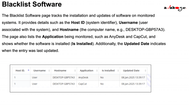 For example, if an organization wants to prevent the use of remote access tools like AnyDesk, it can monitor whether this software is installed on any company computer.