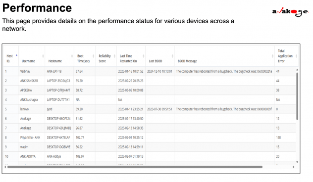 Updated Date: The timestamp of the last update or check of the device’s performance status, ensuring that users have the most current data.